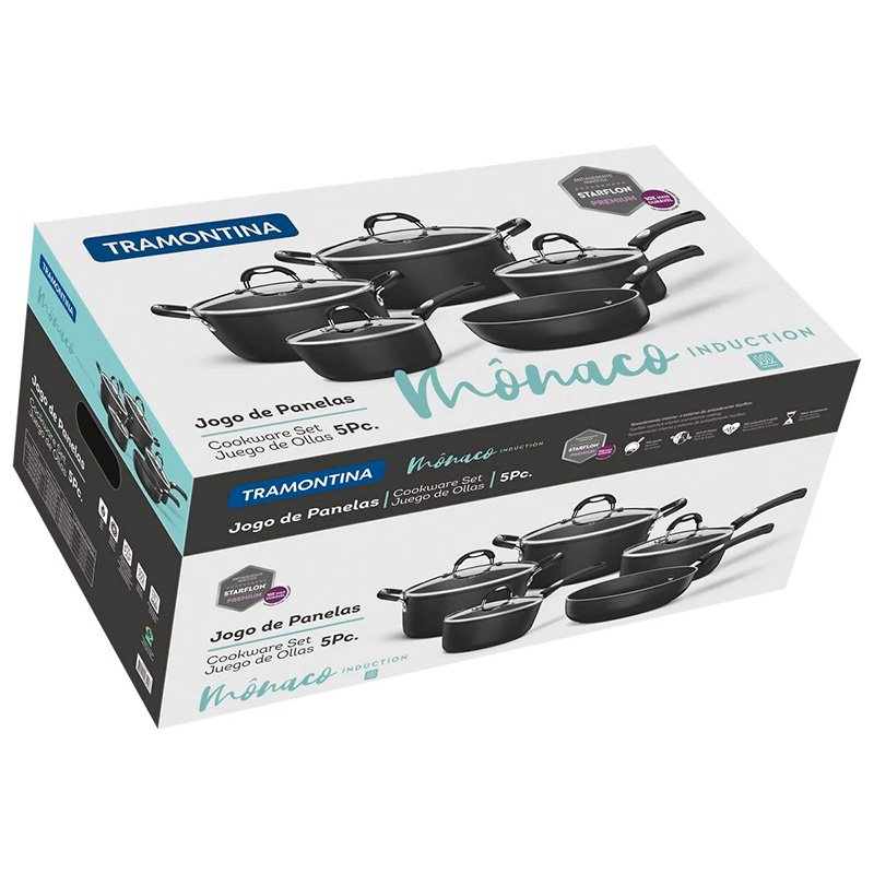 JOGO PANELA MONACO INDUCAO PRETO 5 PECAS TRAMONTINA